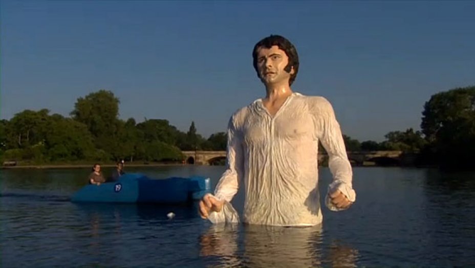 This isn’t the first time a giant statue of an actor was erected in London. You may remember Colin Firth’s Mr. Darcy coming out of Hyde Park’s Serpentine Lake.