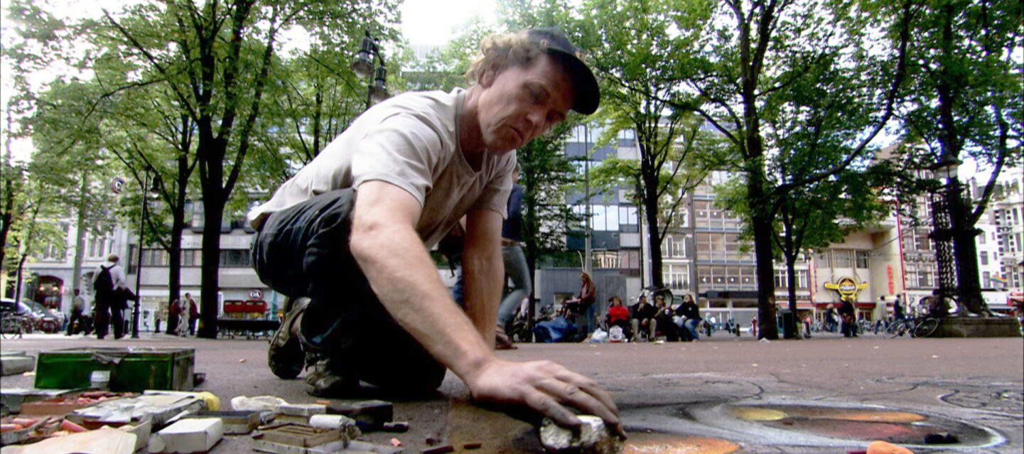 Concrete Canvas S01 E03Street artist Julian Beever travels to Stockholm, Sweden, where he finds the perfect public square for his next creation, a three-dimensional river scene.