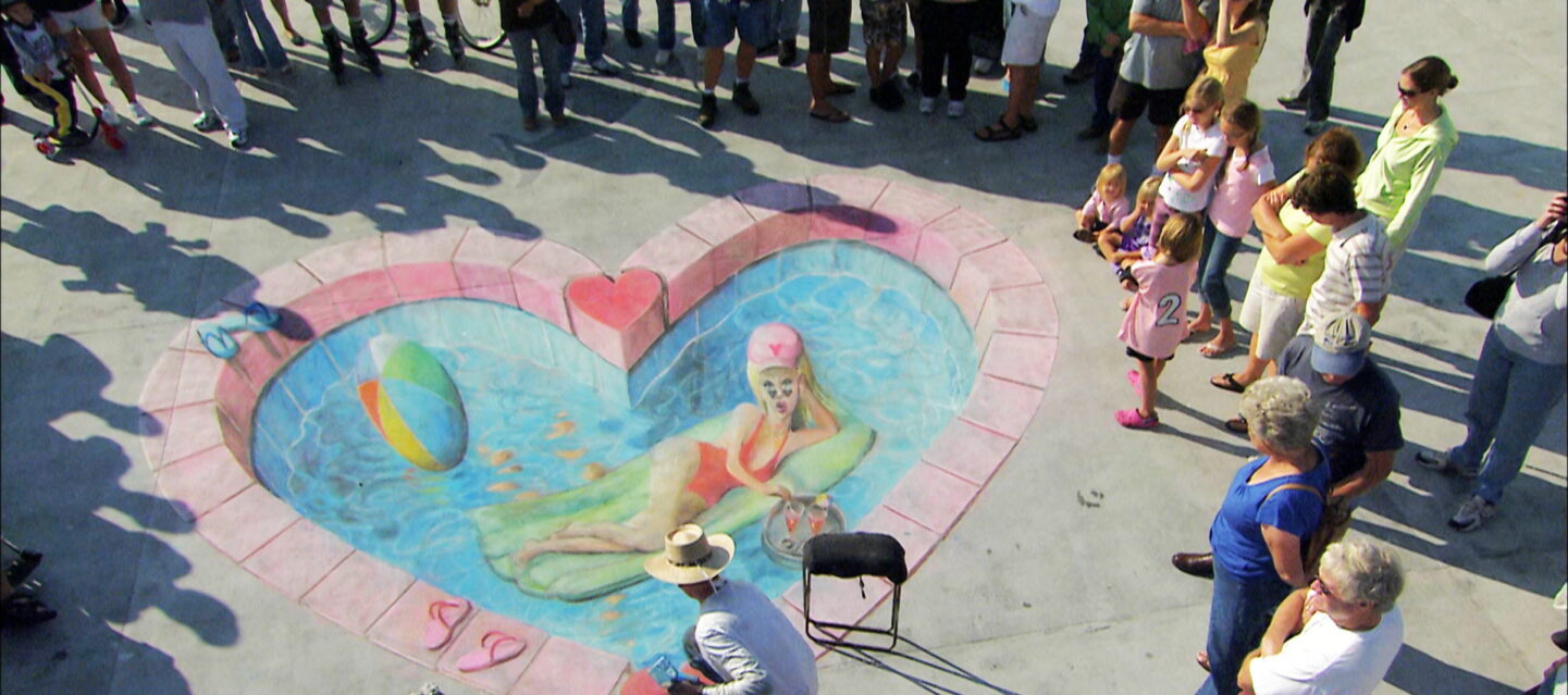 Street artist Julian Beever sets out to create a 3-D chalk-drawn scene of pedestrians exiting a subway, as an homage to New York life.