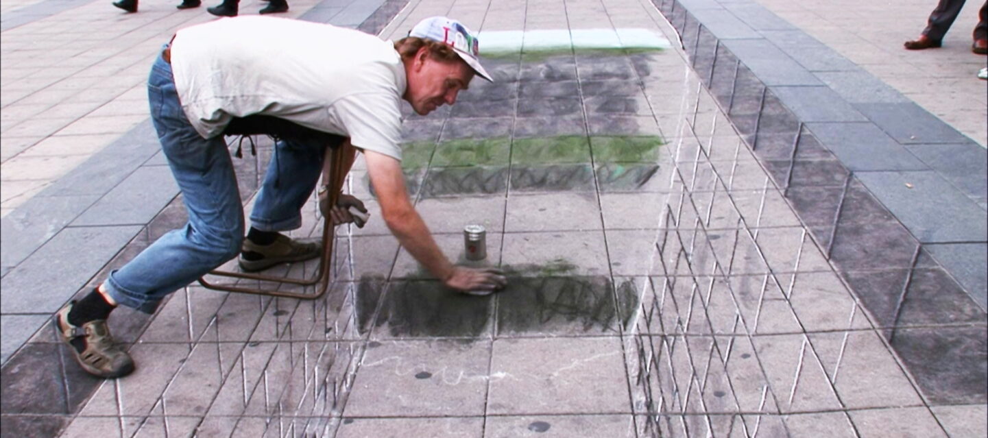 Street artist Julian Beever sets out to create a 3-D chalk-drawn scene of pedestrians exiting a subway, as an homage to New York life.